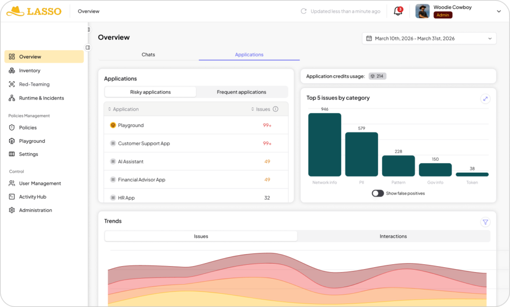 Lasso markets intent-based prompt injection protection, claiming real-time detection under a low-latency budget and emphasizing semantic/intent analysis beyond keyword filters.