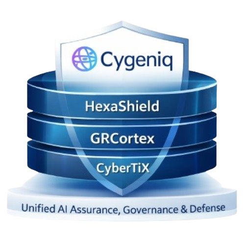 Cygeniq enables organizations to adopt AI with confidence, defend against AI-powered threats, and demonstrate responsible, compliant, and trustworthy AI at scale, providing CISOs with operational control, executives with strategic assurance, and regulators with defensible oversight